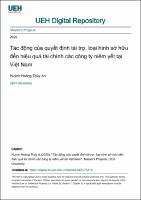 Tác động của quyết định tài trợ, loại hình sở hữu đến hiệu quả tài chính các công ty niêm yết tại Việt NamAuthor(s): Huỳnh Hoàng Thúy An (2025)