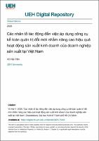 Các nhân tố tác động đến việc áp dụng công cụ kế toán quản trị đổi mới nhằm nâng cao hiệu quả hoạt động sản xuất kinh doanh của doanh nghiệp sản xuất tại Việt NamTrong bối cảnh kinh tế ngày càng bất định, đặc biệt đối với các doanh nghiệp sản xuất (DNSX)– nhóm dễ tổn thương trước khủng hoảng và cạnh tranh – nhu cầu đổi mới hệ thống kế toán quản trị là tất yếu. Tuy nhiên, các công bố liên quan các nhân tố ảnh hưởng đến việc áp dụng công cụ kế toán quản trị đổi mới (KTQTĐM) và tác động của chúng đến hiệu quả hoạt động sản xuất kinh doanh vẫn còn hạn chế. Vì